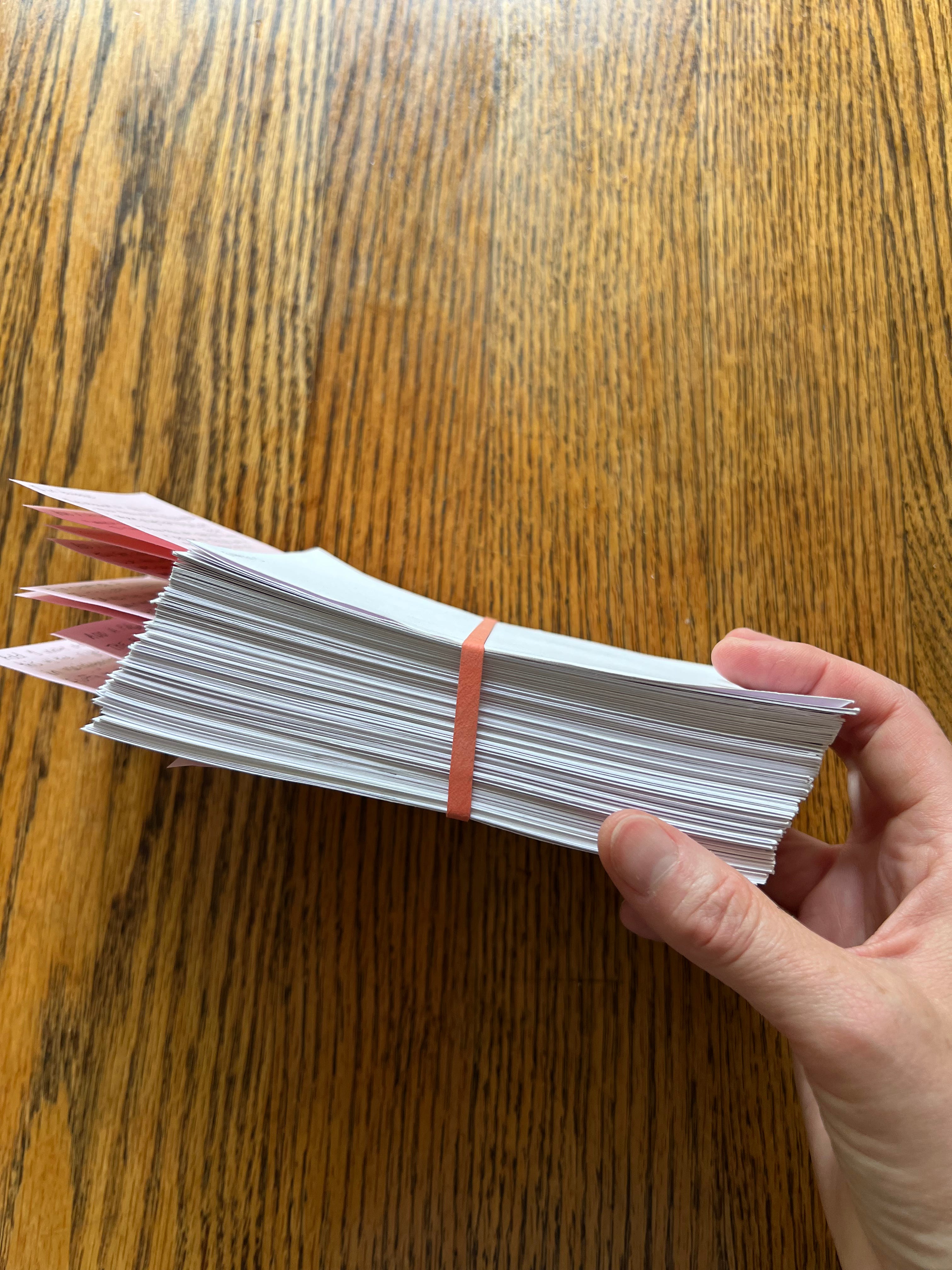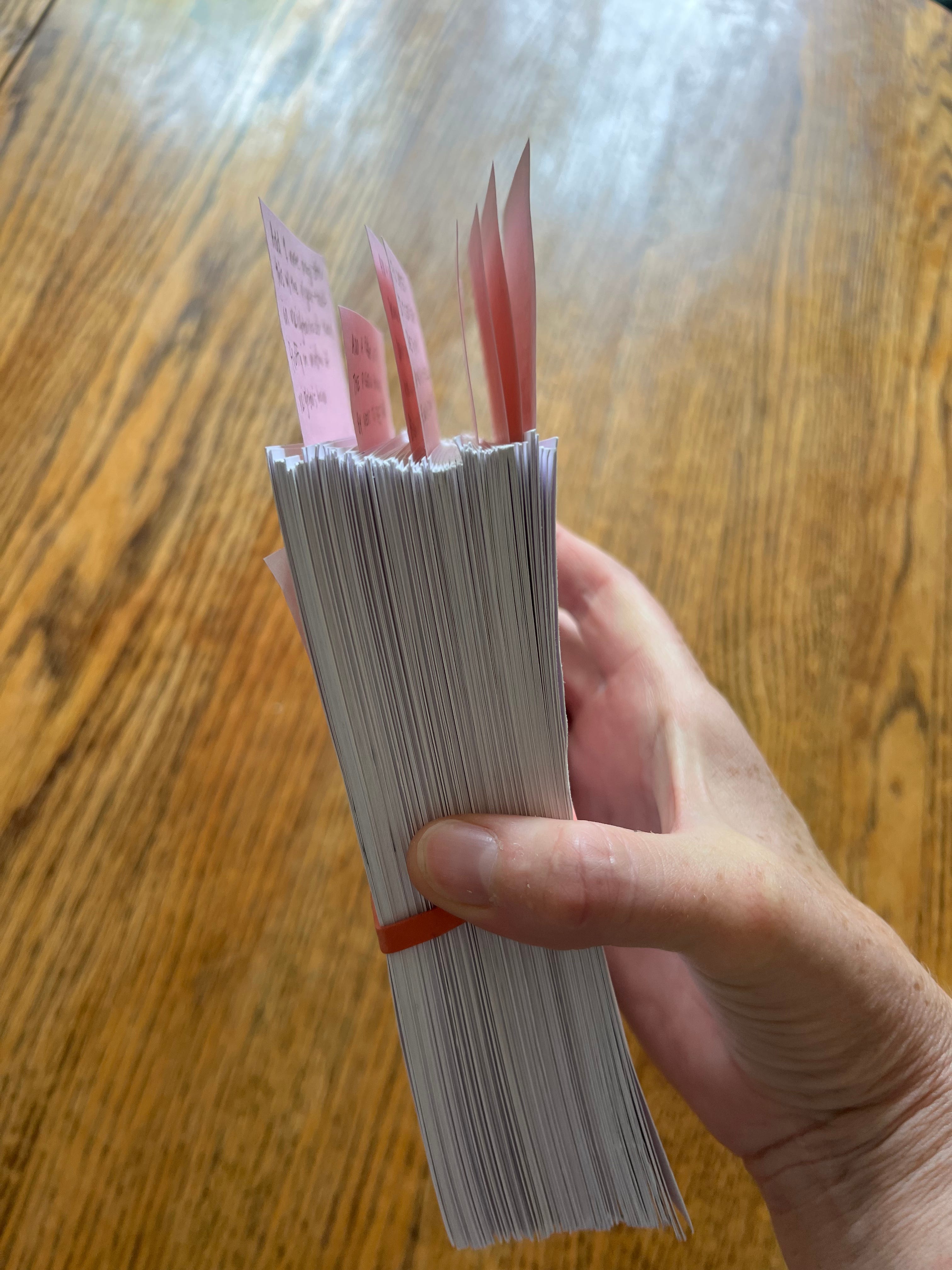 Here’s what it looks like: it’s 156 4x6 index cards full of a new story.