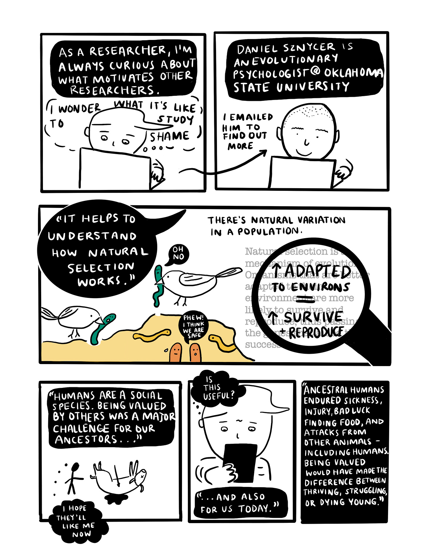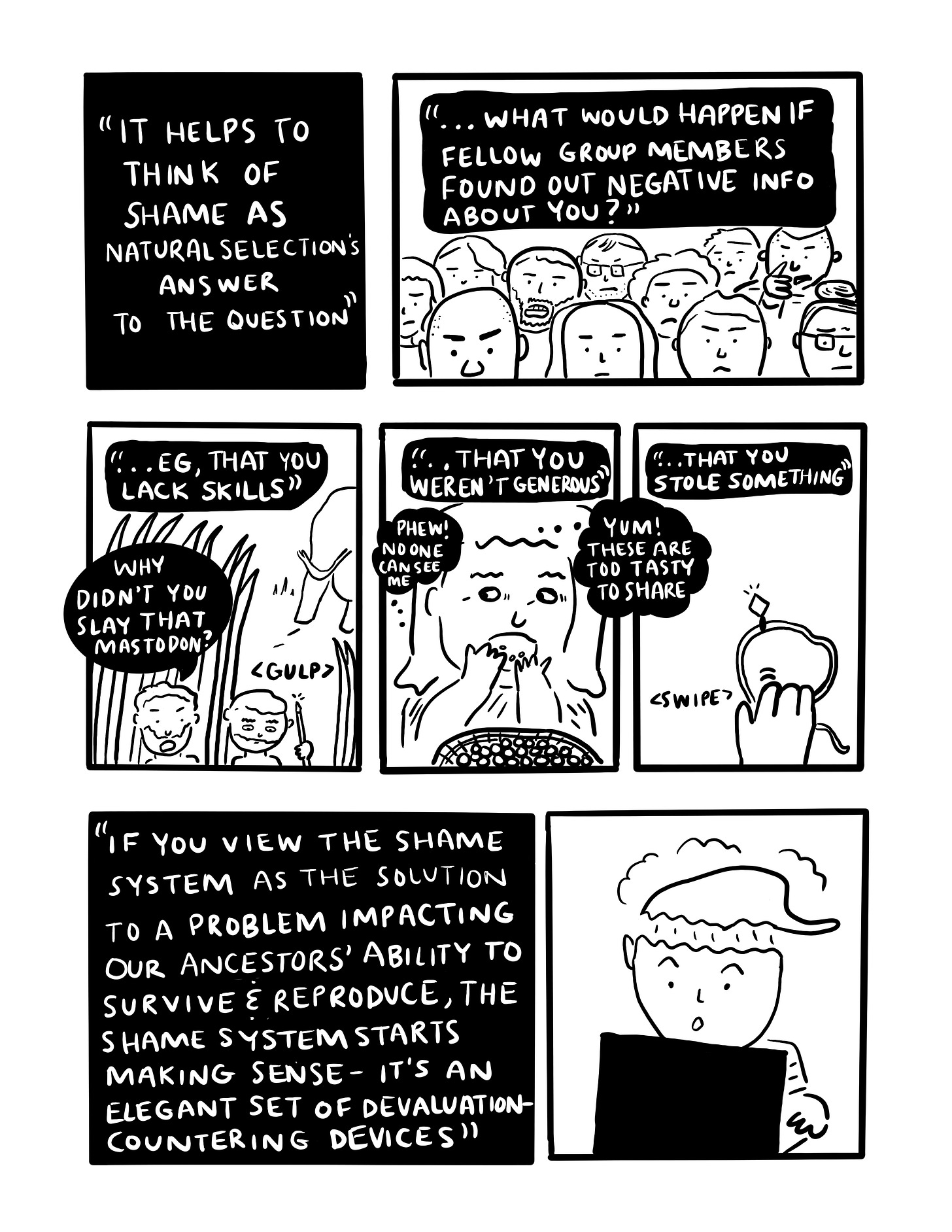 Yes! Shame is weirdly elegant. Wish I could post rough comic pages on shame from my project, "Meet Your Monkeys" here. I'm no scientist (I'm a former visual journalist who made tons of science infographics). Fun to compare notes!